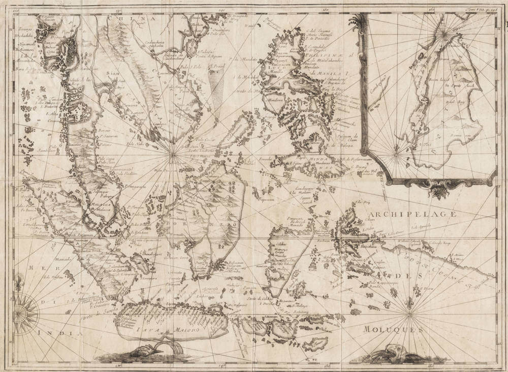 The upper right has an inset with the narrow Strait of Bouton, which was a dangerous but fast highway in the age of sail for the Dutch to get to the Philippines, Formosa and Japan.