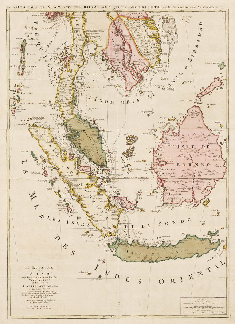 The Kingdom of Siam with the kingdoms that are tributary to it, and the islands of Sumatra, Andaman, etc., and the neighboring islands, with the observations of the six Jesuit Fathers sent by the King as his mathematicians to the Indies and to China, where is also traced the route that they took through the Strait of Sunda up to Siam.