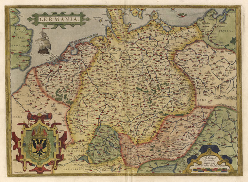 Based on Christiaan Sgrothen (1520-1608) map of Germany, published in 9 sheets in 1565.