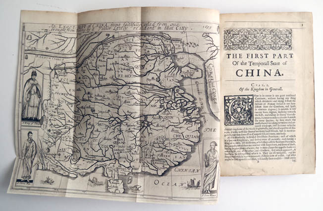 2 parts in one volume, 2° folio (288 x 183mm). 2 engraved portrait frontispieces, 2 engraved maps of China (one folding, one full-page in the text), engraved costume plate, bookseller's advertisement leaf at end, contemporary calf.