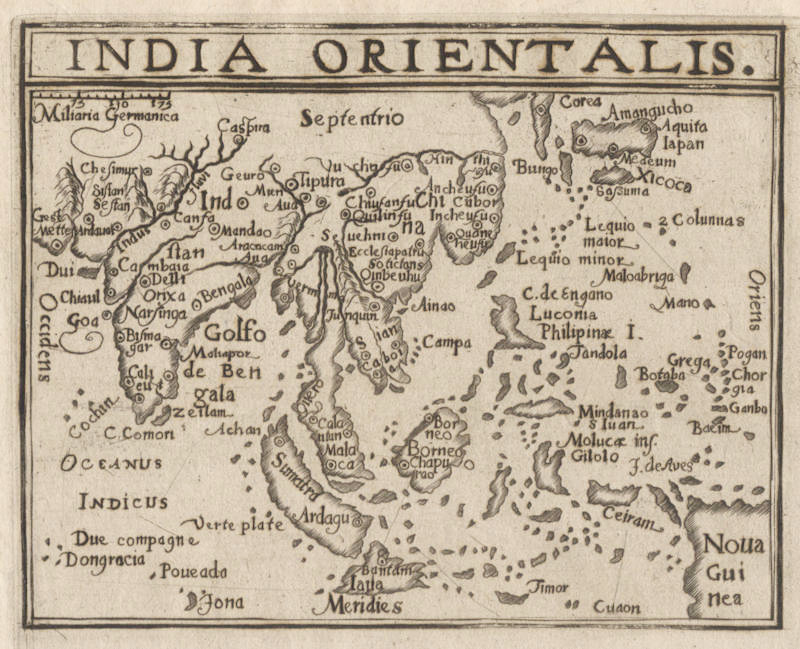 Extremely rare overview map of the Far East, that only occurs in the last Wytfliet edition.