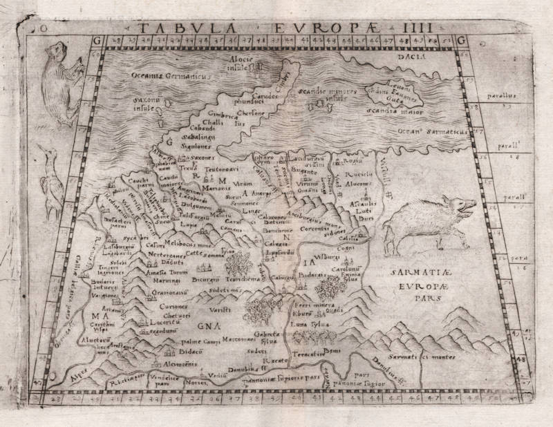 "Sixty maps are engraved in copper in Mattiolo-Gastaldi's Ptolemy of 1548. [...]. On the title-page is written: 'Con alcuni comenti et aggiunti fattevi da Sebastiano Munstero Alamanno, but this evidently refers to the text, not to the maps, which, from a geographical point of view as well as in their technical execution, are immensely superior to those of the learned geographer and Hebrew professor at Basel.