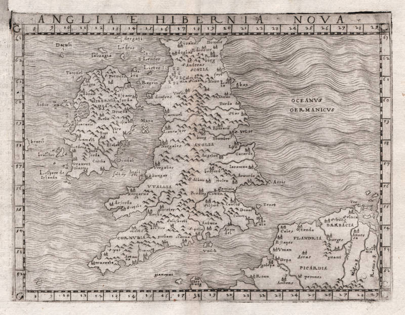 Giacomo Gastaldi's new map of the British Isles, one of the first modern maps dedicated to the region. A cornerstone piece.