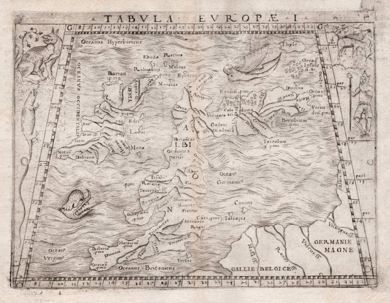 Ptolemy's first map of Europe by Giacomo Gastaldi, covering the British Isles.