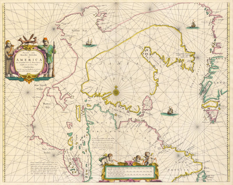 Johannes van Loon's very rare sea chart of the Northern part of America, with Hudson Bay, Davis Straits, Button Bay and the North West Passage. The first sea chart of the region. All charts by Joannes van Loon's Sea Atlas are of exceptional rarity.