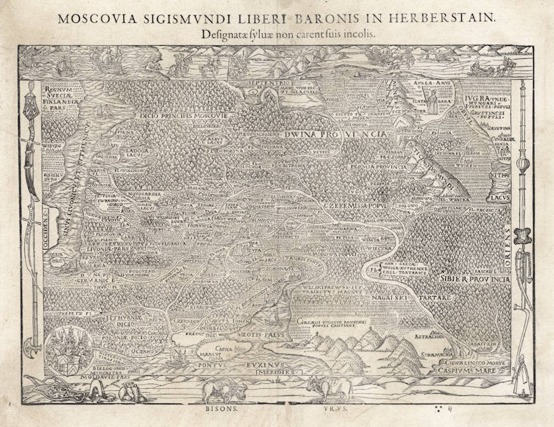 One of two maps of Russia compiled by Herberstein, who was ambassador from the Habsburg Emperor, Maximilian I to Moscow.