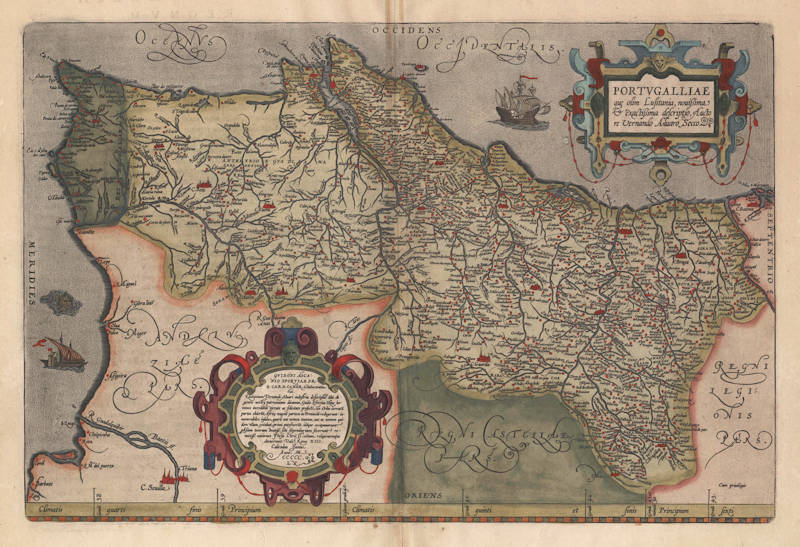 Abraham Ortelius' map of Portugal after Fernando Alvares Secco. Dedication dated 1560. West is on top of the map.