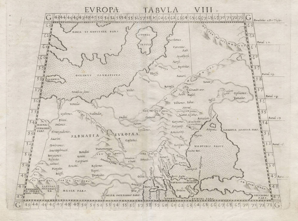 Ruscelli's version of Ptolemy's eighth map of Europe, covering today's eastern Europe, Russia, and Scandinavia.