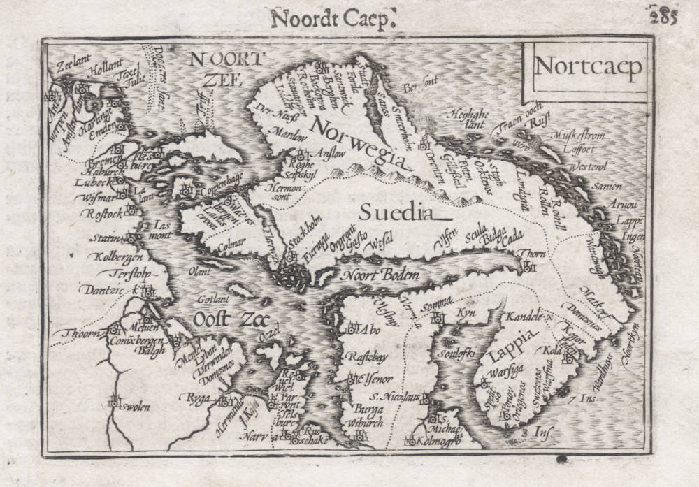 The first edition was published in 1598 by Barent Langenes, bookseller and publisher located in De Vier Winden in Middelburg (1597-1605). Little is known about Langenes, except that he published some travel descriptions. As is stated on the title page, the edition was also sold by Cornelis Claesz, in Amsterdam. All later editions were published by Claesz. and his successors.