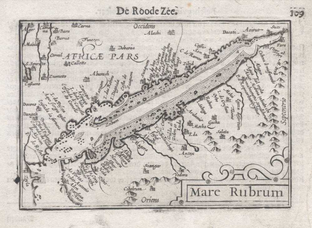 Antique map of the Red Sea, Arabia and Egypt by Langenes