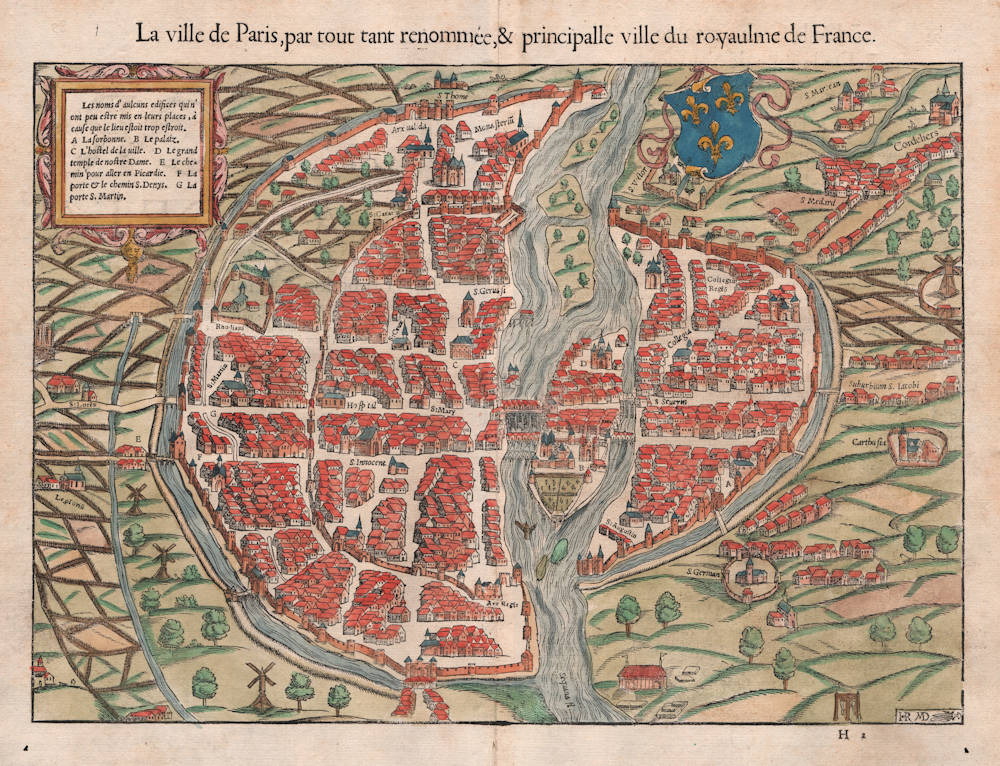 This map is the oldest printed map of Paris, pre-dating by 22 years the famous 1572 Braun & Hogenberg plan of Paris, which is an updated copy of this Münster map.