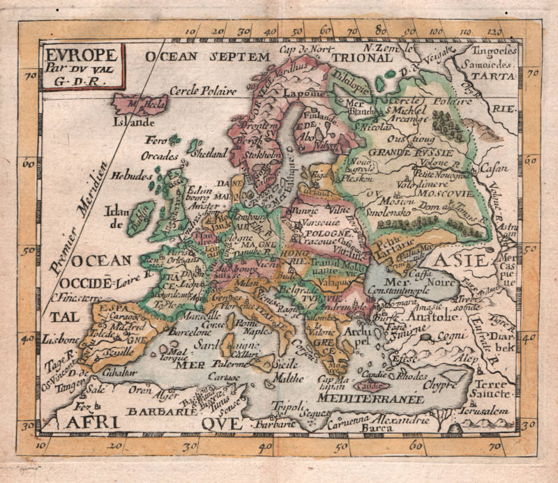 Duval's rare map of the whole of Europe, in attractive original colour. Collector's item.