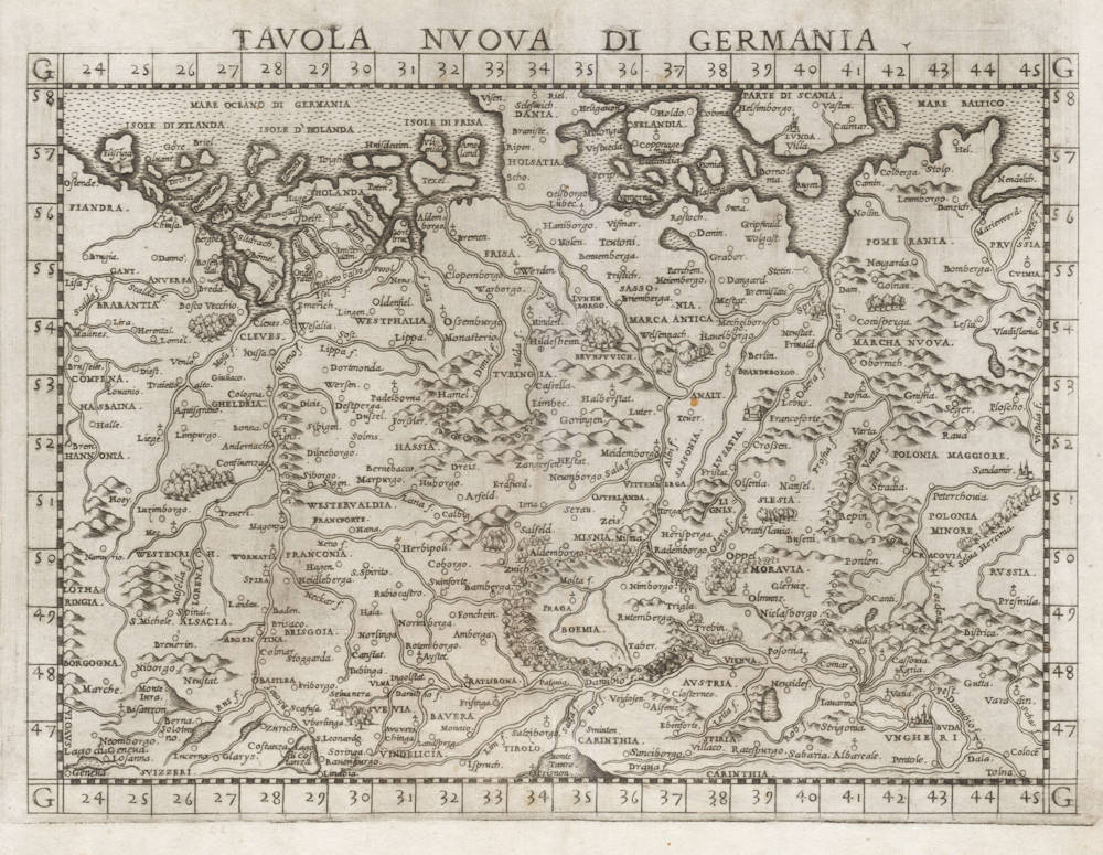 The newly angraved maps were based, generally, on those compiled by Giacomo Gastaldi for the Venice edition of 1548."