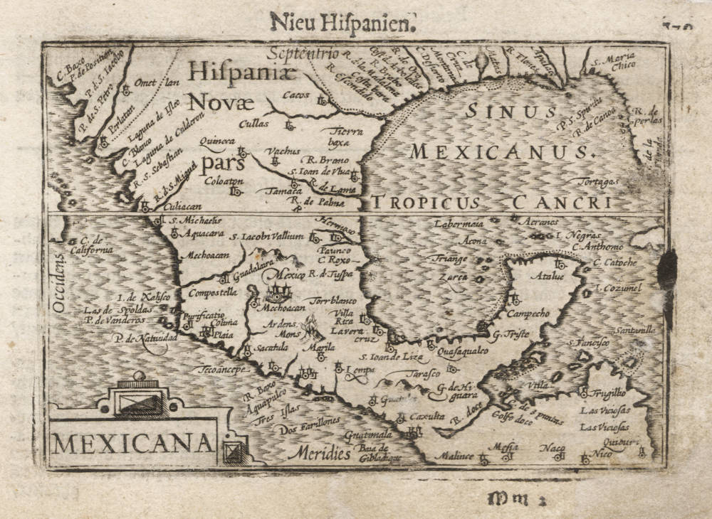 "One of just two regional maps of North America in the popular Langenes atlas, its origins appear to be the Cornelis de Jode Americae Pars Borealis of 1593, although the nomenclature is not identical. Named in the same year, the Rio Grande is still called by one of its many prior ones. The maps for the Caert-Thresoor were beautifully cut by various well known engravers, amongst them Jodocus Hondius the Elder and Pieter van den Keere. Koeman states that some of the copperplates were used in other publications; however, the author is not aware of any using this map. There are two known states:
