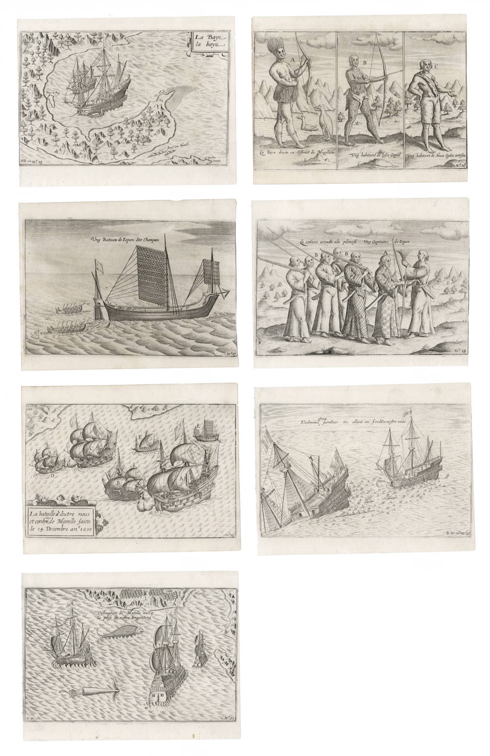 Complete set of all seven maps and views of the Philippines visit of Olivier van Noort. First published in his 1602 printed journal about his circumnavigation of 1598-1601.