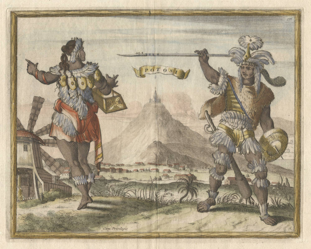 The mountain was conceived to be made of silver ore and was the major supply of silver for the Spanish Empire. From 1572-1767, Potosi was the location of the Spanish colonial silver mint. The silver had to be coinaged into Spanish dollars, known as pieces of eight (Reale de a ocho or Peso), the first international currency that was used and accepted world wide.