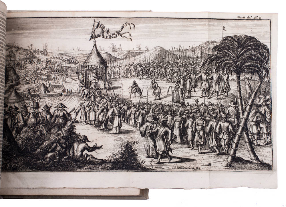 First and only edition, in the original Dutch, of an essential primary source on the history of Formosa (Taiwan) during its occupation by the Dutch East India Company (VOC) in the years 1624-1662, and especially on its fall into Chinese hands in the latter year. Generally ascribed to the governor who "lost" Formosa, it defends his actions and harshly criticises the role of the VOC. The plates, well etched by Johannes van den Aveele and J. van Baden, show a temple interior, the Dutch fleet entering the bay, battle scenes on sea and land, the taking of fort Zeelandia, and two views on one plate showing Chinese atrocities against the Dutch. The last part, comprising 38 pages, provides the texts of 16 primary documents, 1646-1674.