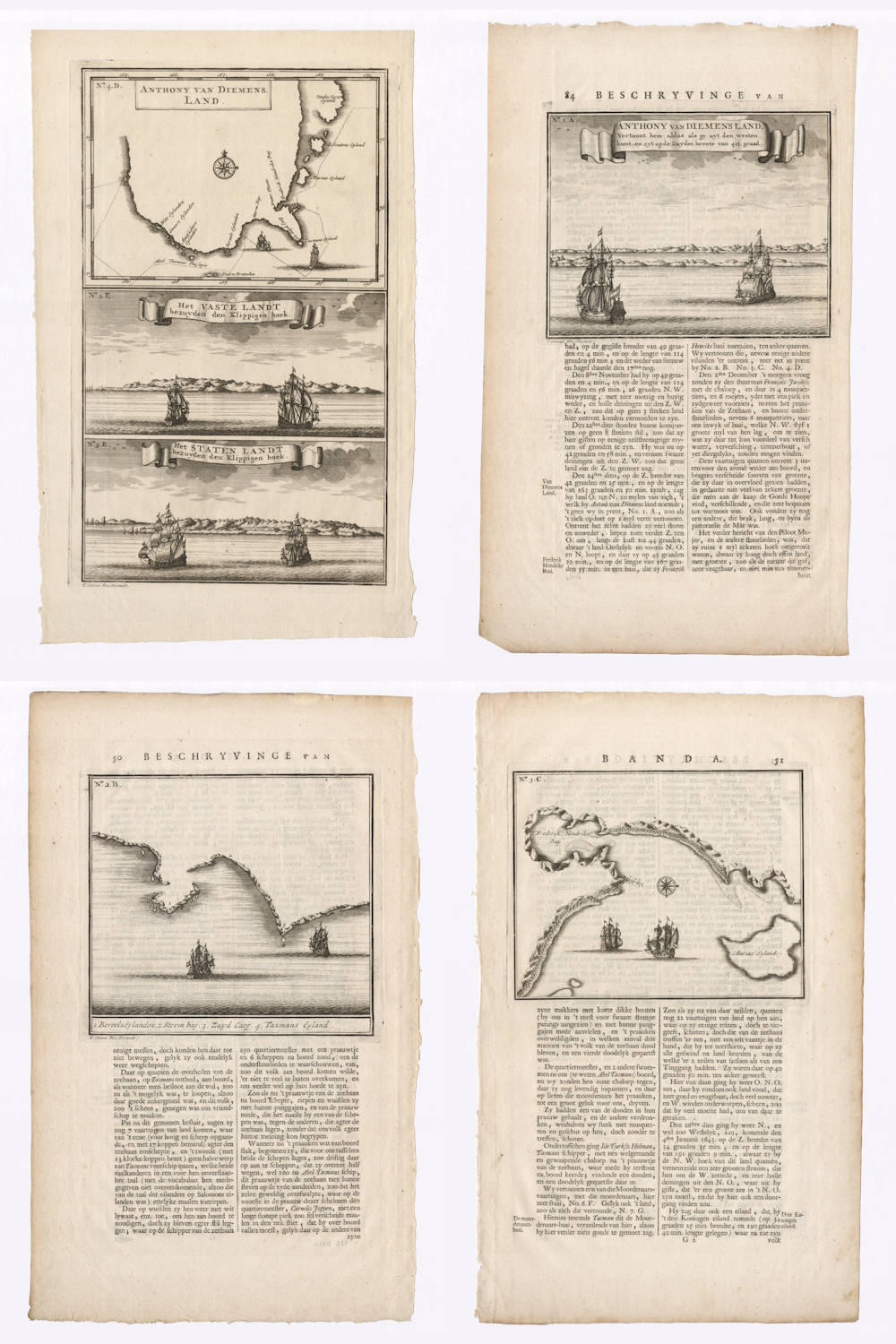 Valentijn's four copper engravings of Tasman's 1642 discovery of Tasmania.