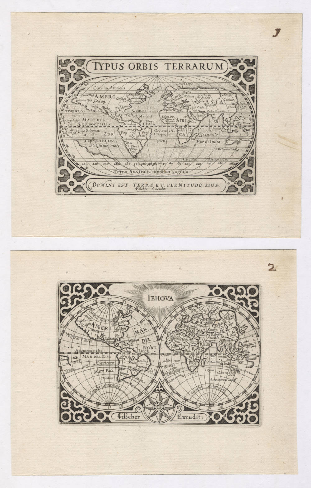 In 1638, Visscher produced one of his most celebrated works, the "Orbis Terrarum Typus," which was engraved by Pieter Goos. This map was notable for its hemispheric presentation of the world, reflecting the latest geographical knowledge while maintaining Visscher's signature decorative style.