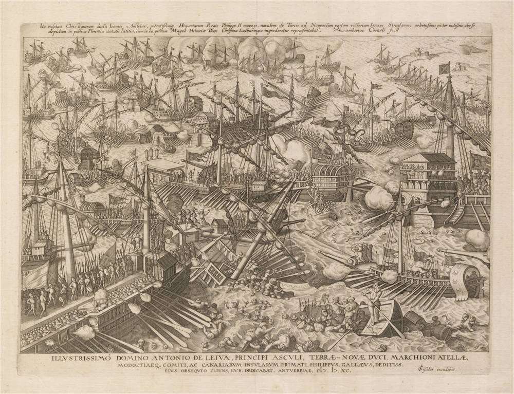 On October 7, 1571, a naval battle took place near the city of Lepanto on the Gulf of Corinth between a Christian and a Turkish fleet. The fleet of the Holy Alliance (Spain, Venice, Genoa and the Pope) was commanded by Don John of Austria. The Turkish fleet was under the command of Müezzinrade Pasa. It was a major defeat for the Turks, which was celebrated exuberantly throughout Christian Europe.