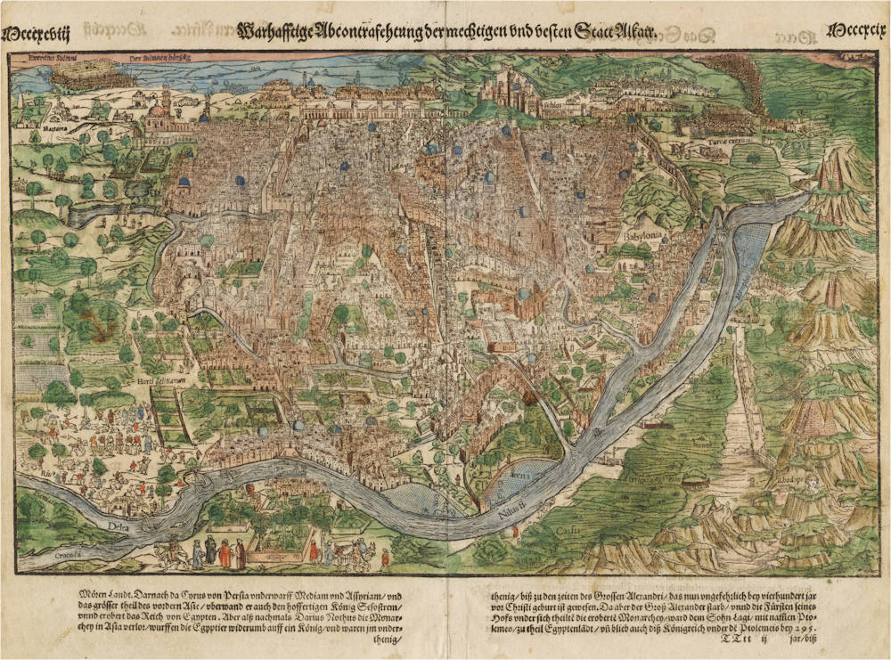 One of the first obtainable depictions of the legendary city of Cairo, with many landmarks named.