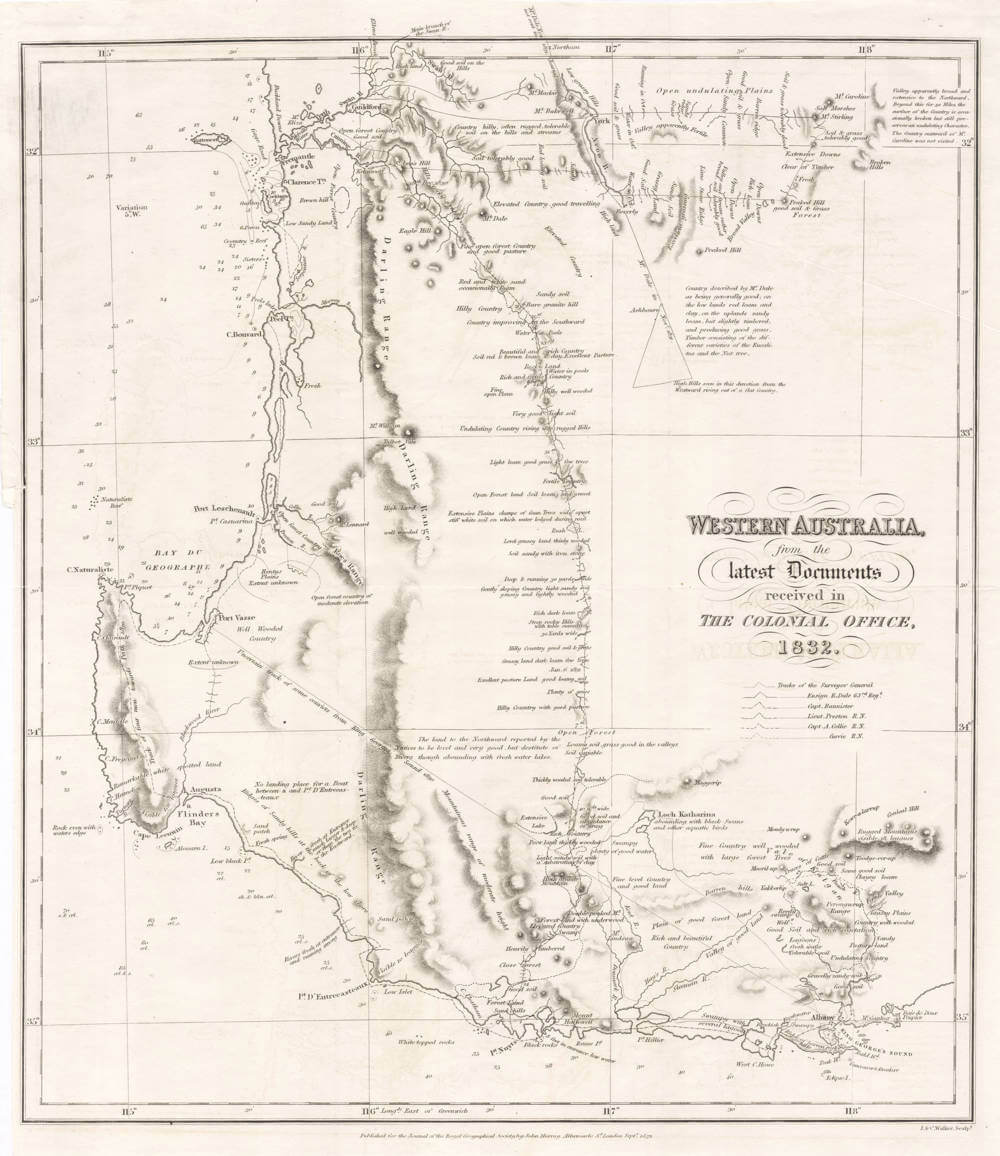 J and C Walker's map of Western Australia was published just three years after the state became a separate colony in 1829. This was a time of rapid change for Western Australia. John Septimus Roe had been appointed as first Surveyor-General in 1829 (a post he held until 1871) and had commenced his survey work of the Swan River settlement. Other inland exploration had begun in earnest especially in the south-western corner. Fremantle Harbour had been selected as the settlement's port and by 1832, some twenty or so inland exploratory expeditions had been undertaken in the region.