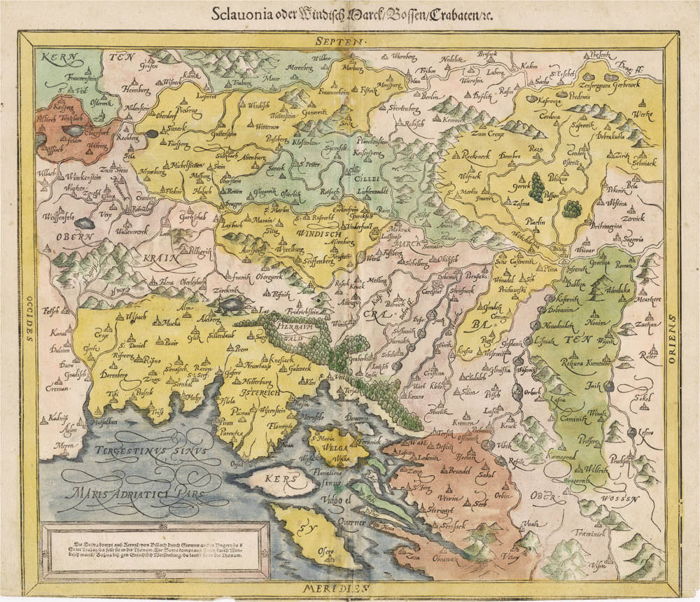 This new map is closely modeled after Abraham Ortelius' 1570 landmark map of Croatia and environs.