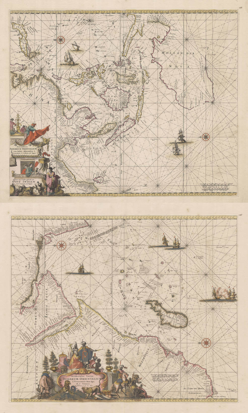 From Frederick de Wit's Sea Atlas Orbis Maritimus ofte Zee Atlas. Classical sea charts of the Eastern and Western East Indies, covering the whole charter of the VOC, from the Cape of Good Hope to Japan.