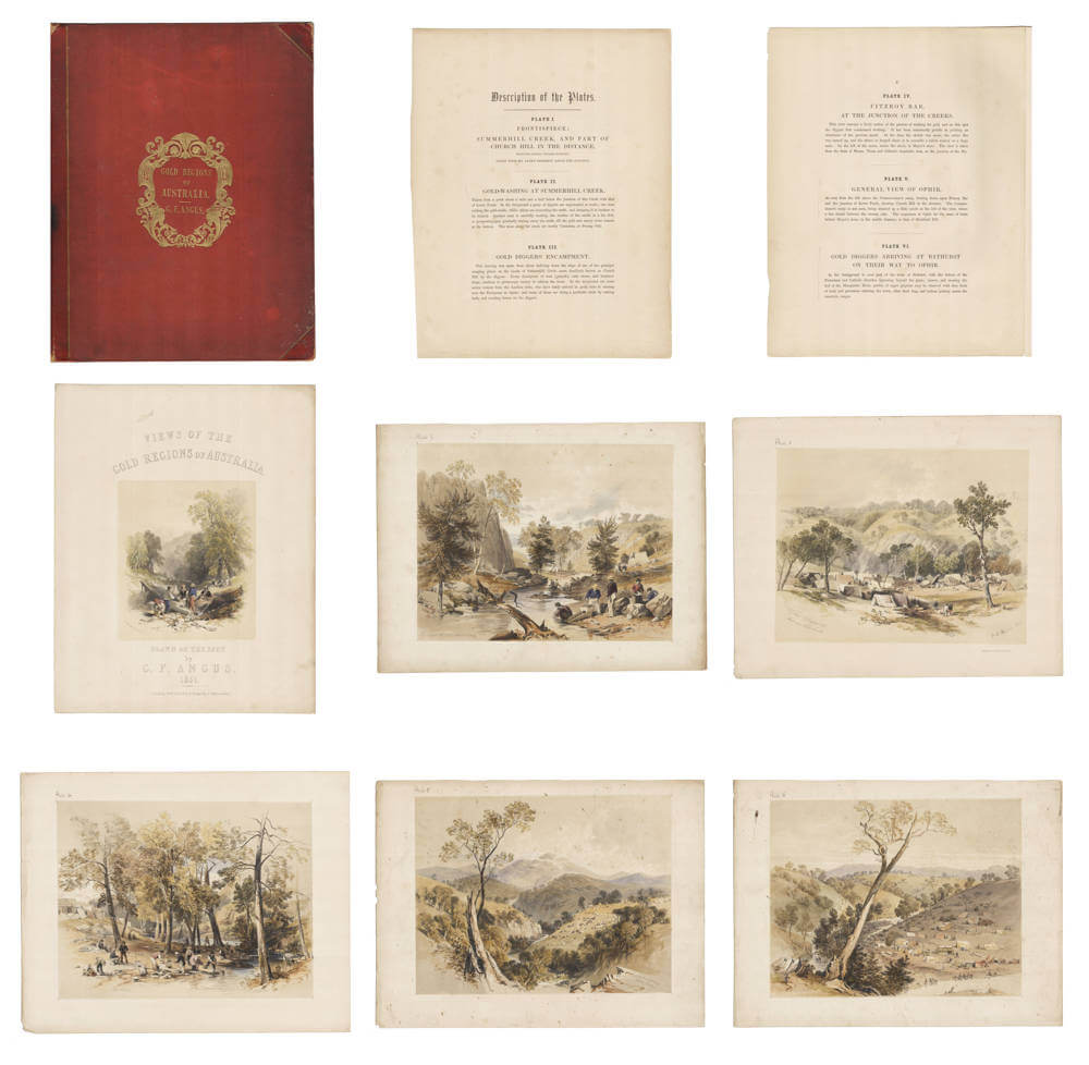 Very scarce, the rare, attractive and highly desirable London version of the 'first folio of goldfields views published in Australia' (Australian Rare Books). This set of six views was the only significant graphic record of the New South Wales goldfields that was to appear.
