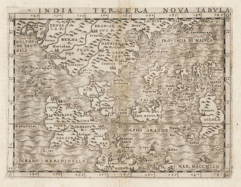 Giacomo Gastaldi's revolutionary new map of South East Asia, the first modern map of the region, based on the latest inside information from Portuguese sources.